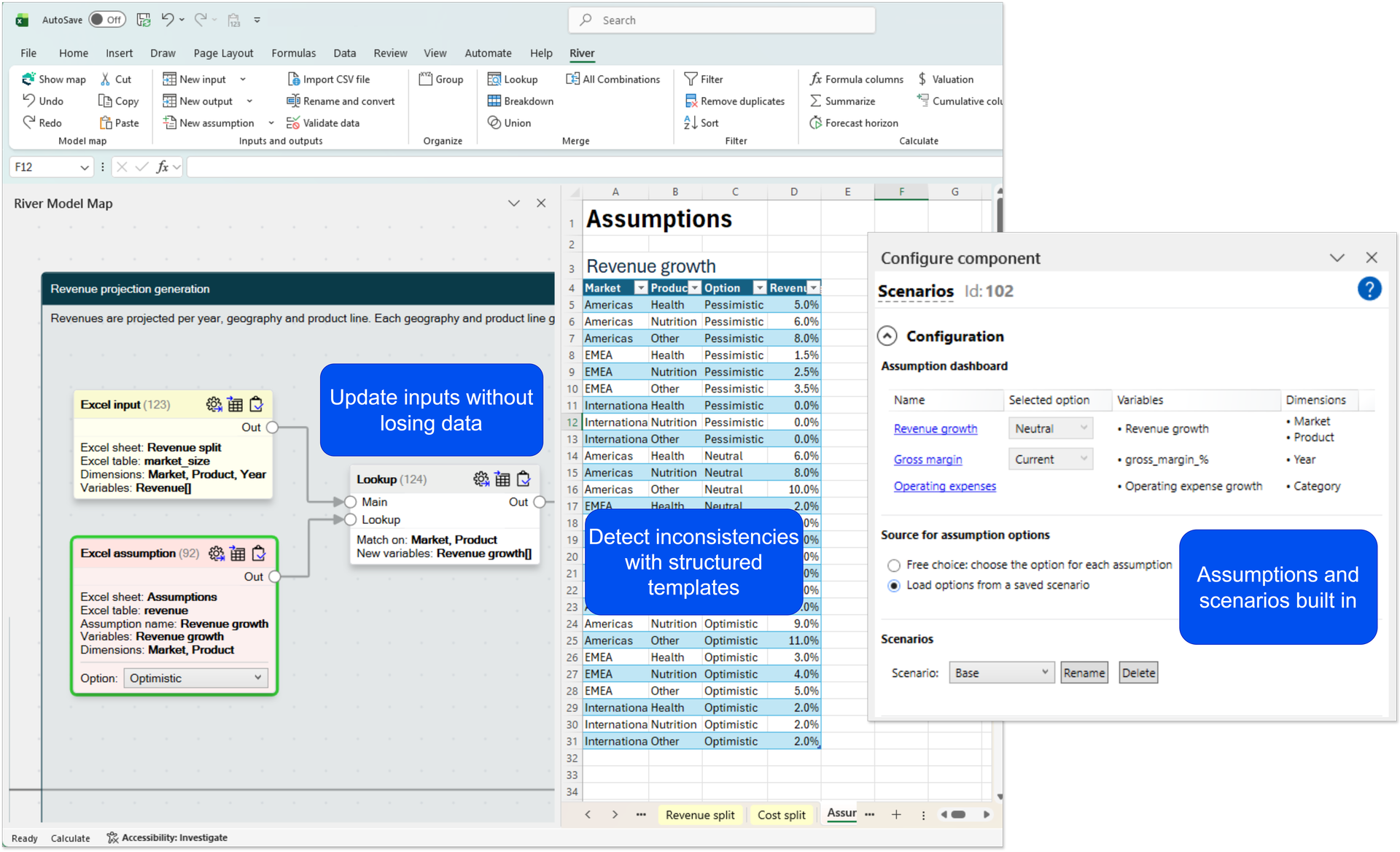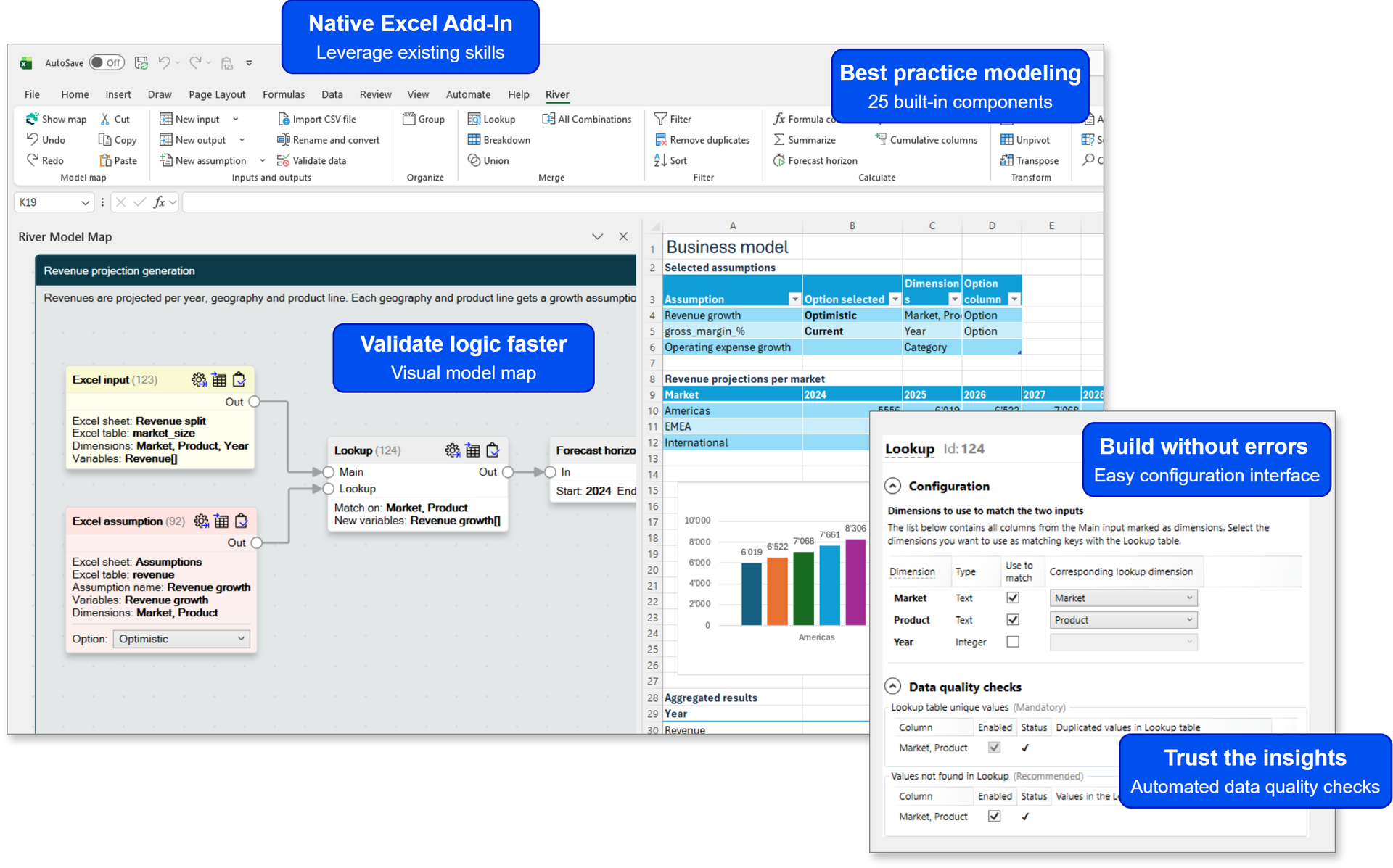 In Excel, every formula introduces risk. River gets rid of formulas and dramatically reduces parameters.
